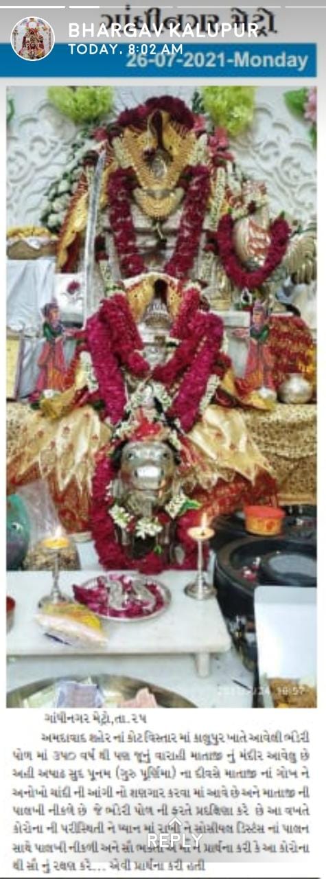 સંવત 1983 માં માતાજી ના વિશાળ મંદિરનું જીણોદ્વાર કરવામાં આવ્યું અને ત્યારથી અહીં માતાજીના સાનિધ્યમાં માતાજીના ધાર્મિક ઉત્સવ મનાવવામાં આવે છે.