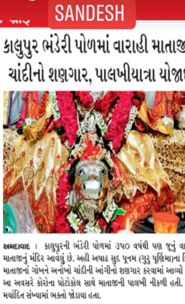 અષાઢ માસમાં "ગુરુપૂર્ણિમા" ના દિવસે માઁ રાજ રાજેશ્વરી જગત જનની માઁ ભવાની શ્રી વારાહી માતાની પાલખી બપોરે 3:00 કલાકે સમગ્ર ભંડેરીપોળમાં પ્રદક્ષિણા કરીને સાંજે 7:00 કલાકે નિજ મંદિર પરત ફરે છે અને રાત્રી ના સમયે ભજન કીર્તન કરવામાં આવે છે.